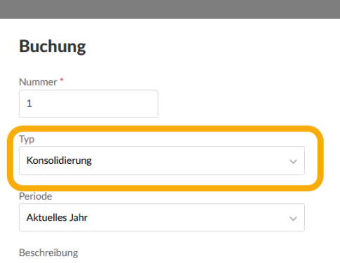 Wählen Sie aus der Drop-down-Liste Typ den Eintrag Konsolidierung aus und geben Sie eine Beschreibung ein.
