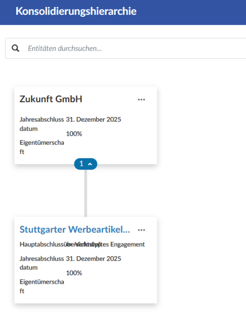 Die Verbindung der beiden Gesellschaften wird in der Konsolidierungshierarchie dargestellt.