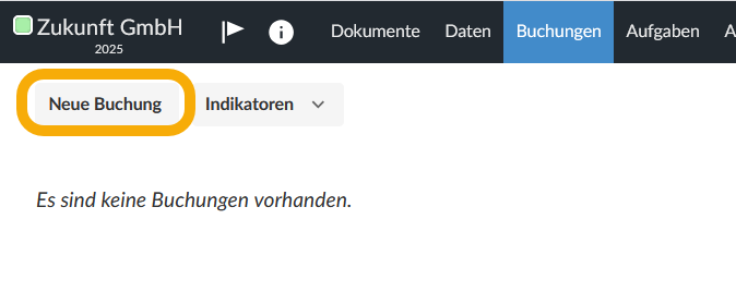 Erstellen Sie über die Schaltfläche Neue Buchung eine neue Buchung.