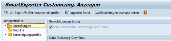 SmartExporter wird durch eine Reihe von Parametern konfiguriert. Der Einstieg in das Customizing ist über den Transaktionscode /AUDIC/SE_CUST jederzeit möglich.