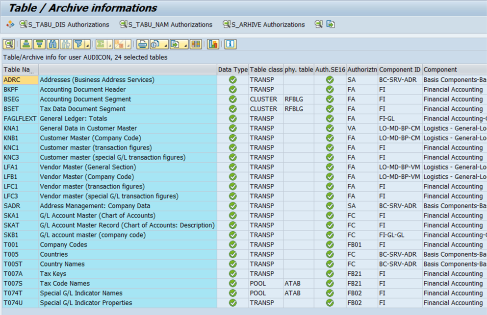 You can also define the tables by specifying SAP® components, e.g. FI*, FI_GL* |