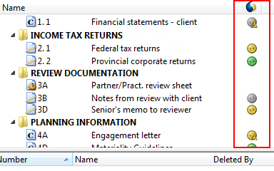 Das Dokumentensymbol für Dokumente mit der Einstellung Nach Aufforderung erscheint gedimmt, bis das Dokument synchronisiert wurde. Fügen Sie dem Dokumentenmanager die Spalte Synchronisierungsverhalten hinzu, um die Einstellung Nach Aufforderung für jedes Externe oder CaseView Dokument anzuzeigen. Neben jedem externen Dokument oder CaseView Dokument wird ein Symbol angezeigt, das das Synchronisierungsverhalten für das Dokument angibt: