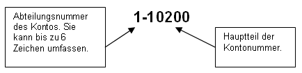 Wenn Sie ein Konto für eine Abteilung eingerichtet haben, wie z. B. das oben angeführte Konto, wird das Hauptkonto, in diesem Fall Konto 10200, zu einem nicht bebuchbaren Konto. Auf diesem Konto können keine Vorgänge mehr verbucht werden. Sie können nur noch auf die Abteilungskonten buchen. Konten, wie z. B. 1-102, 2-102, 3-102 ... 99-102 nennen wir in diesem Fall bebuchbare Konten.