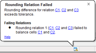 Im obigen Beispiel haben die Rundungsrelationen für die Neuberechnung nicht funktioniert. Das Anklicken des Zellnamens dirigiert Sie zur Zelle, bei der die Rundungsrelationen korrigiert werden müssen.